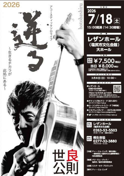 | 公演名 | 世良公則アコースティックソロライブ2026 〜迸る(hotobashiru)〜 生きるチカラが此処にある |