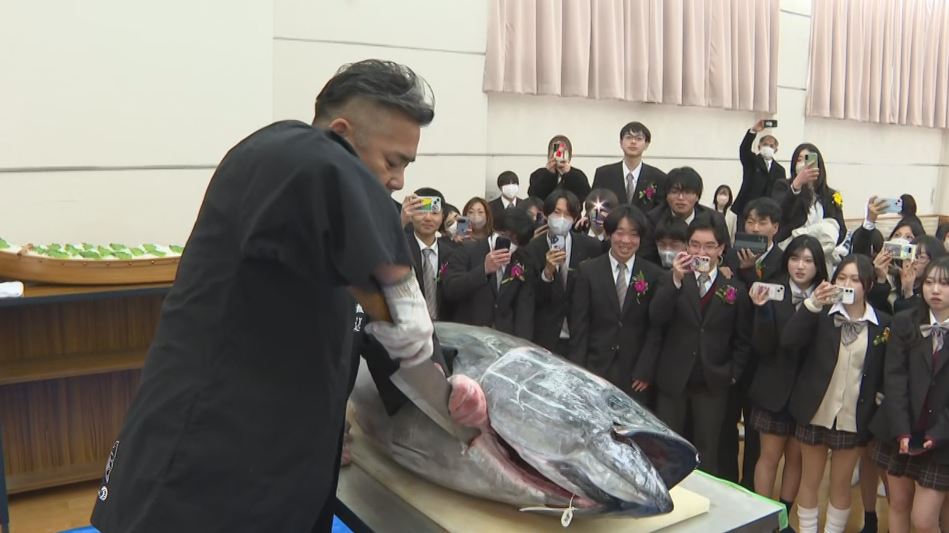 担任から卒業祝い「マグロの解体ショー」のプレゼント