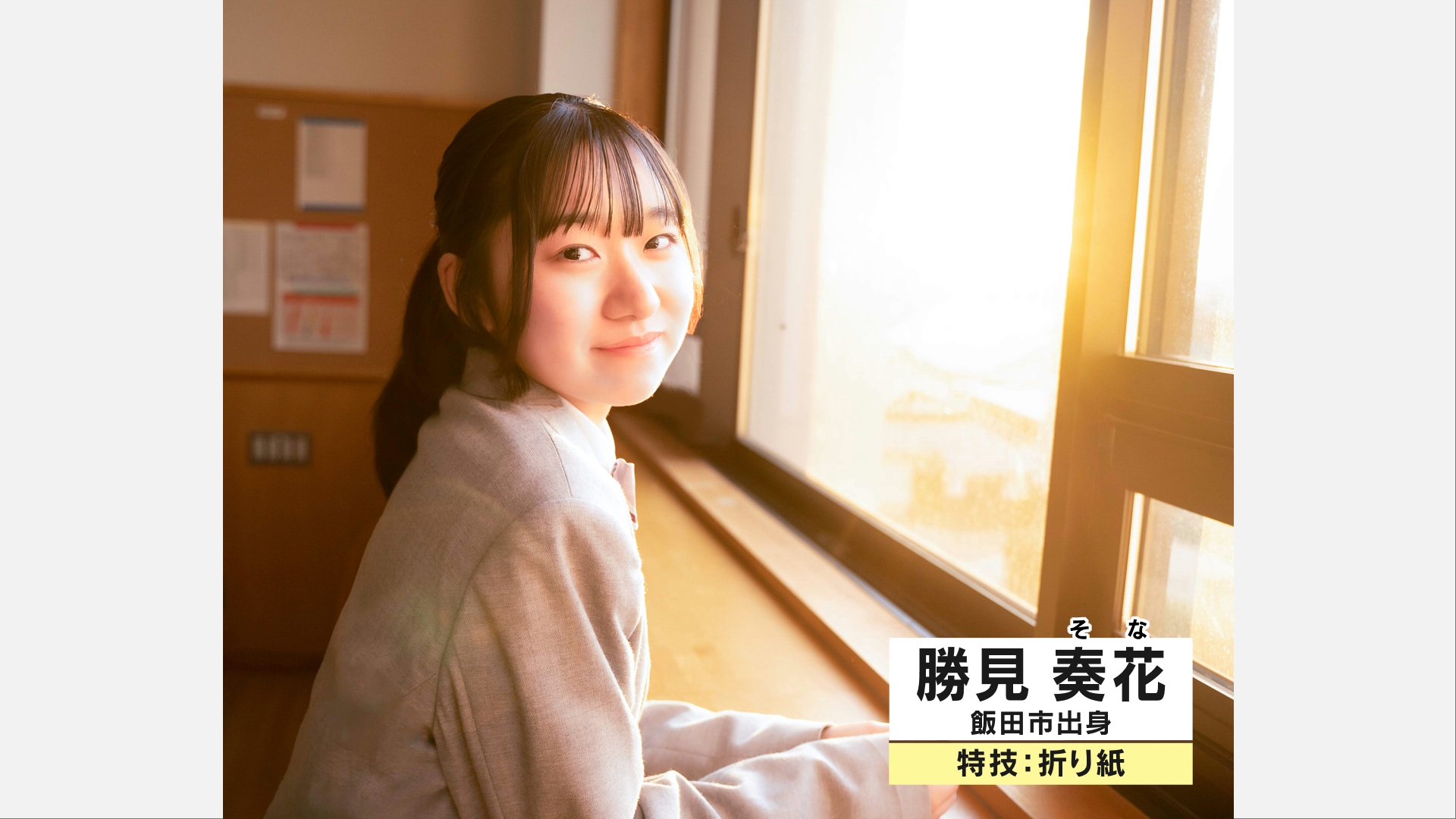 ▲飯田市出身の勝見奏花(かつみ そな)さん。特技は折り紙。