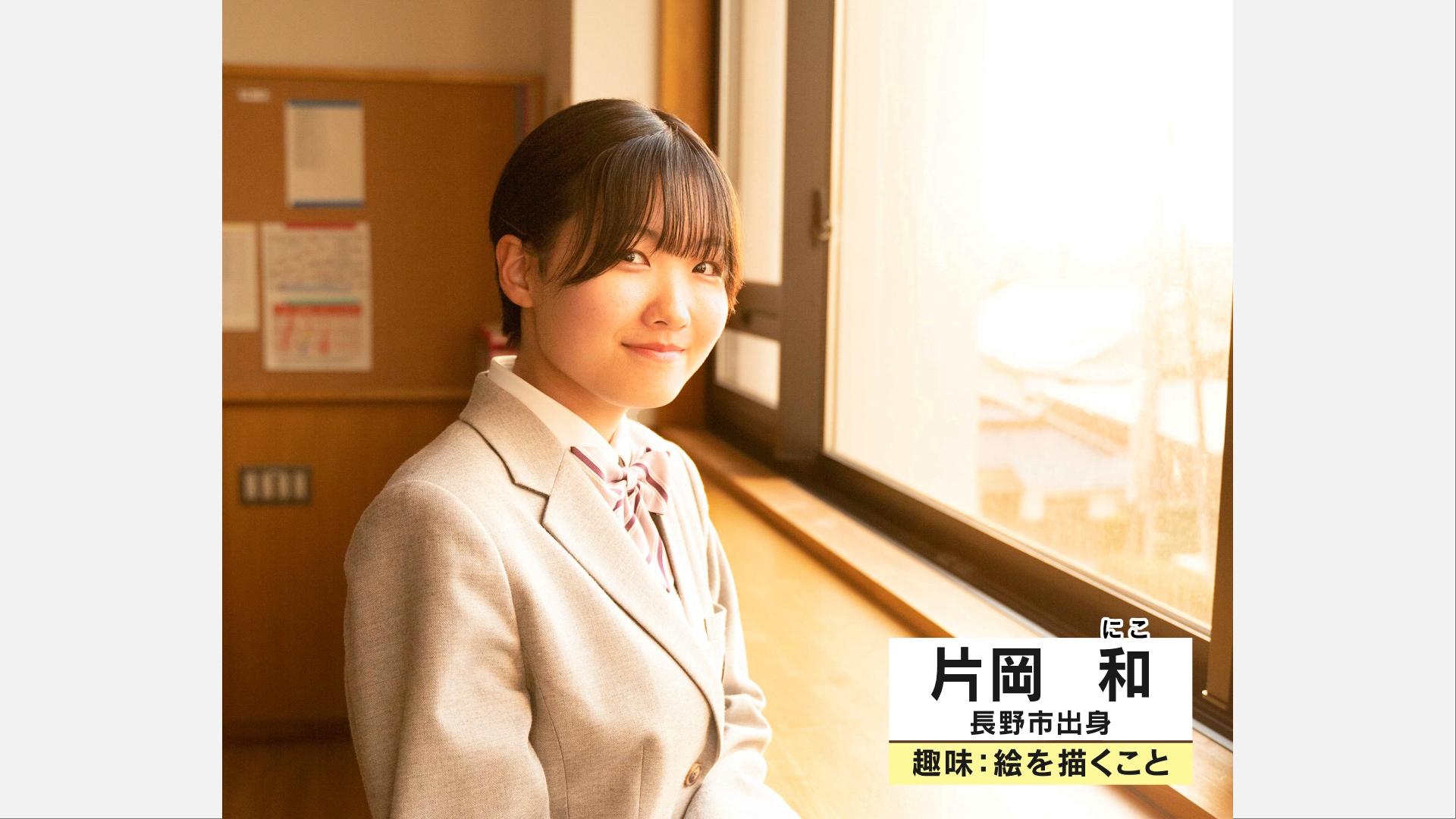 ▲長野市出身の片岡和(かたおか にこ)さん。趣味は絵を描くこと。