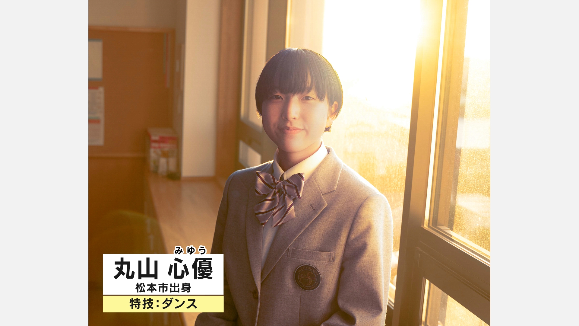 ▲松本市出身の丸山心優(まるやま みゆう)さん。特技はダンス。