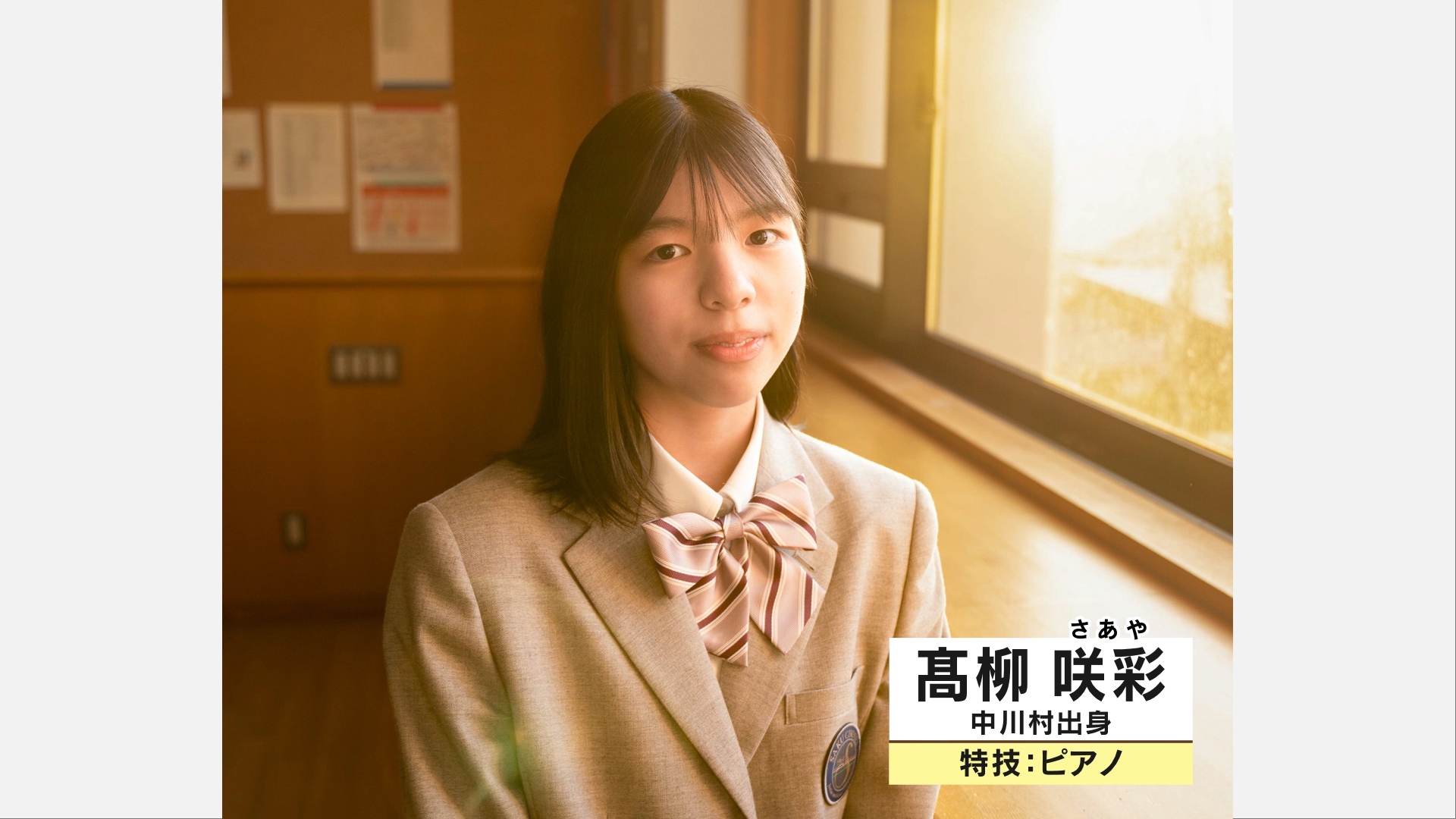 ▲中川村出身の高柳咲彩(たかやなぎ さあや)さん。特技はピアノ。