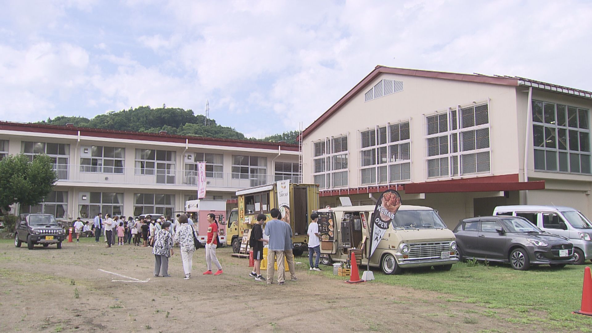 イベントは明るいうちから始まり、会場の信更小学校にはキッチンカーが出た他、体育館では、おやきなどが販売され、にぎわいました。