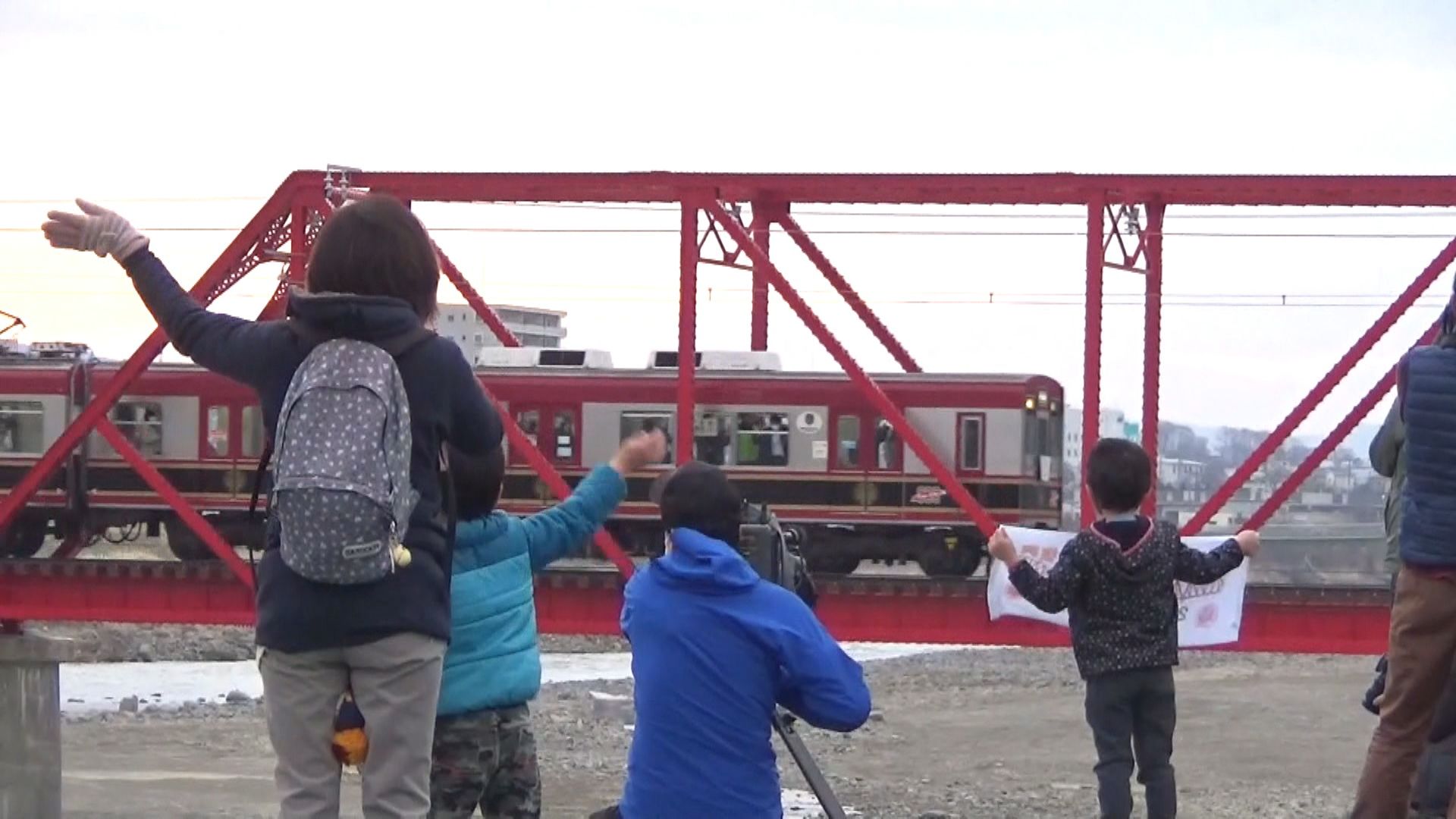 「532日ぶりに別所線がお客さんを乗せて赤い鉄橋の上を走っていく!!」