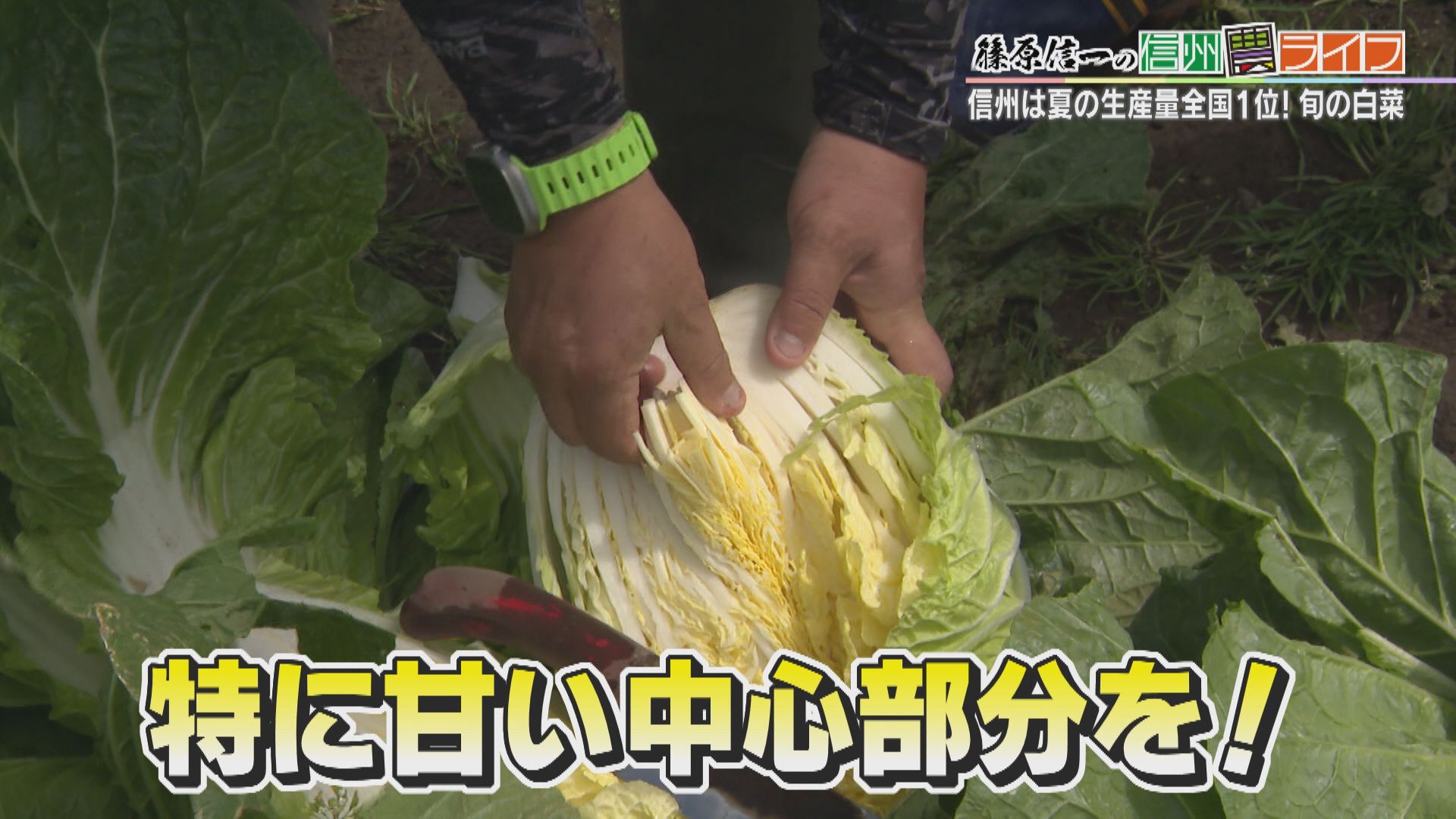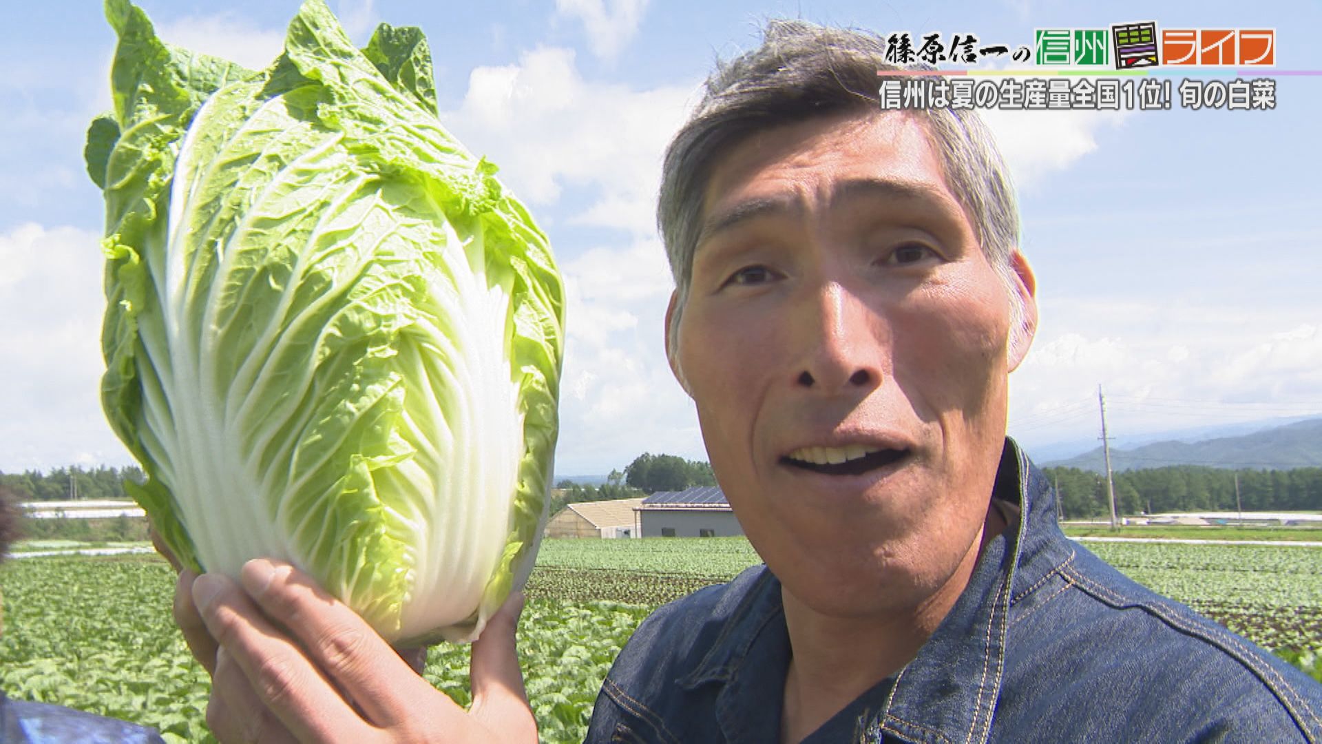 「夏の白菜は長野県の高冷地ならではです。ここは標高1200メートル。冷涼な気候と昼夜の寒暖差で、甘くておいしい白菜が育つんです」