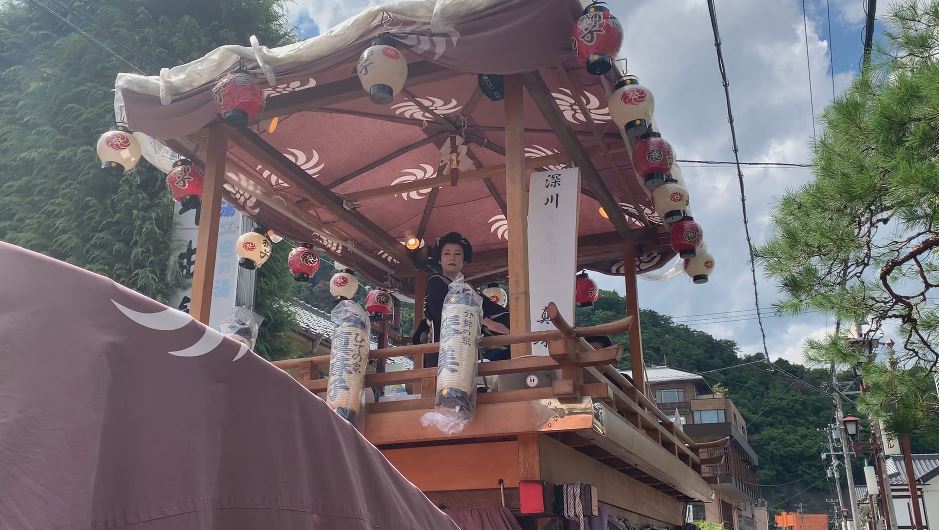 山車の上で踊りを披露した芸者・真珠子さん