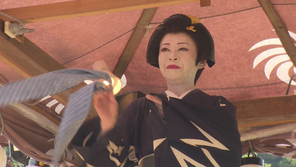 置き屋「ひでの屋」の芸者・真珠子(たまこ)さん。4年ぶりに多くの見物客の前で踊りを披露しました。