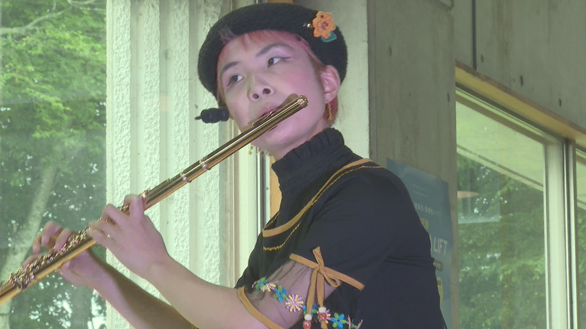 館内に響くフルートの音色。演奏しているのは、プロ奏者の坂口実優さん(25)。この日は、白馬村のスキー場にあるレストランでコンサート。