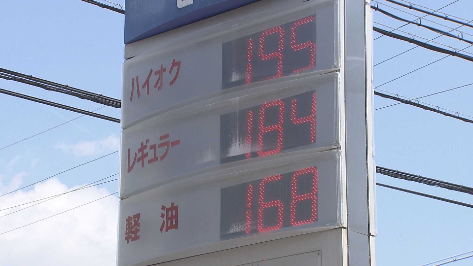 「長野市内のガソリンスタンドです。レギュラーガソリンの販売表示価格は、184円です」