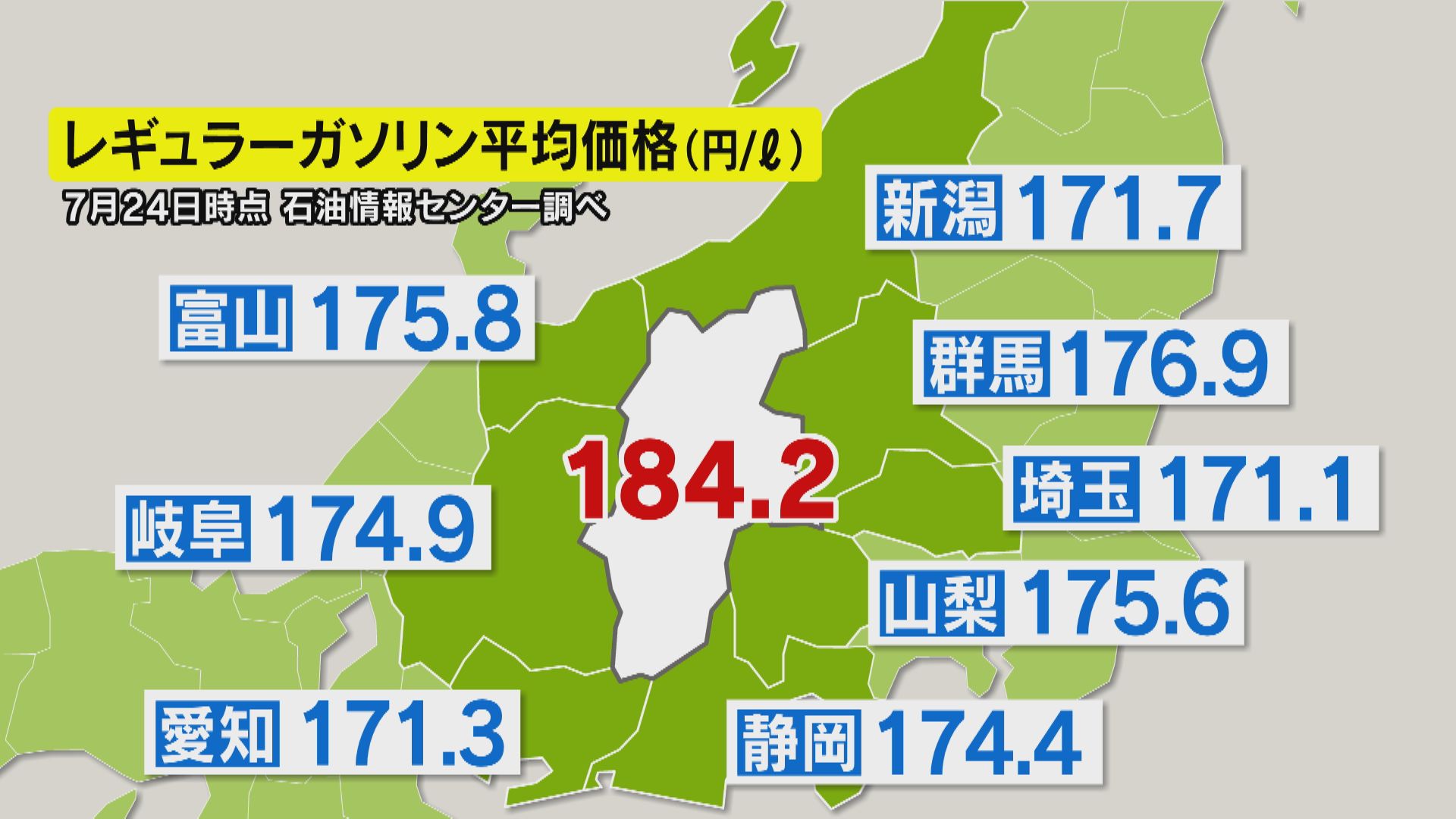 実は長野県周辺の8つの県はいずれも170円台で、県内よりも10円ほど安くなっている。