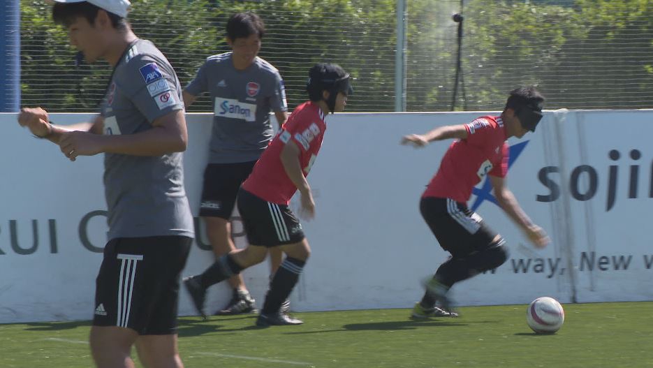 音の鳴るボールを追いかけ、激しく奪い合う選手たち。視覚障がい者らの5人制サッカー・ブラインドサッカーの日本代表チームです。