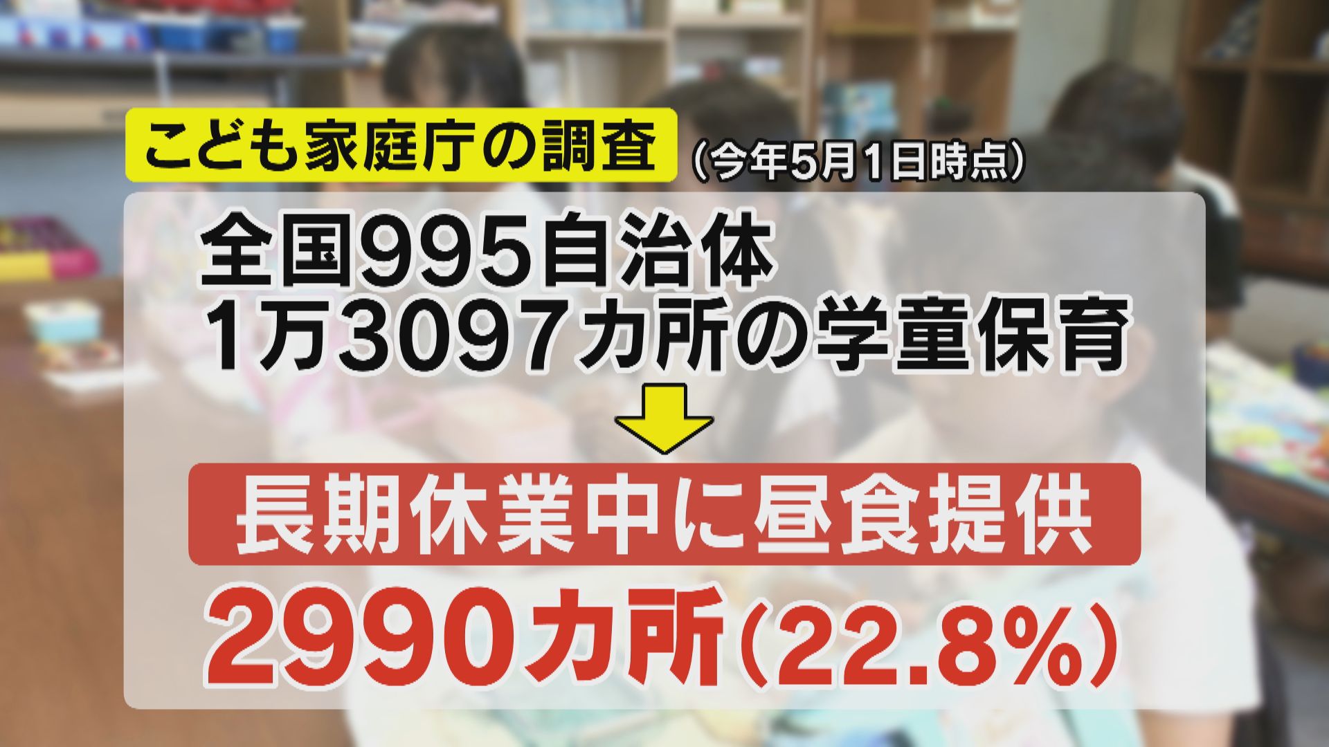 今年5月1日時点の調査では、提供の有無を把握している全国995の自治体・およそ1万3000カ所の学童保育のうち、提供していたのは2990カ所。全体の2割程度だった。