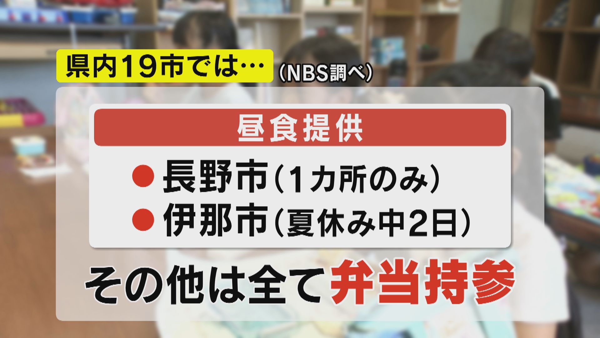県内も「弁当持参」がほとんどで、県内19市では、長野市の一部と夏休み中、2日だけ提供している伊那市を除き「弁当持参」が主流。