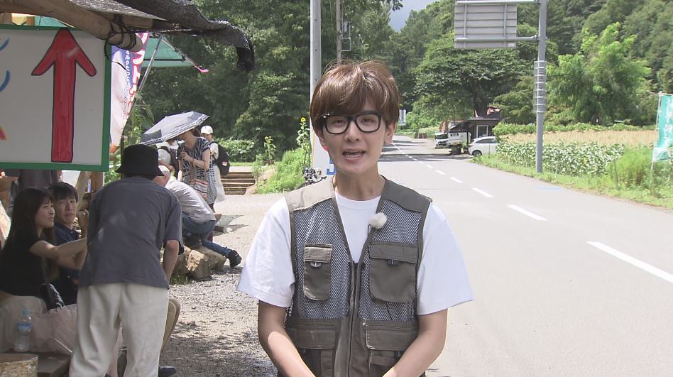 「信濃町にやってきました。特産品のトウモロコシが最盛期を迎えていて、『もろこし街道』もたくさんの人にぎわっています」