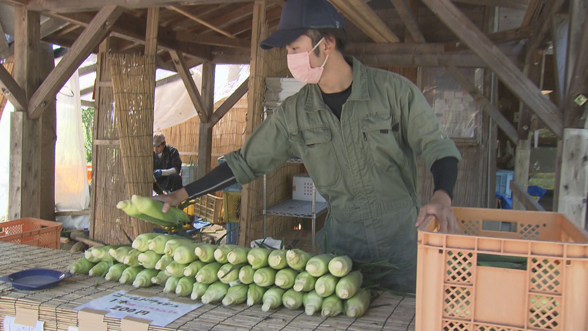 「30本買いました。夕方、バーベキューをしようと思って。ここのトウモロコシがおいしいと評判だったので」