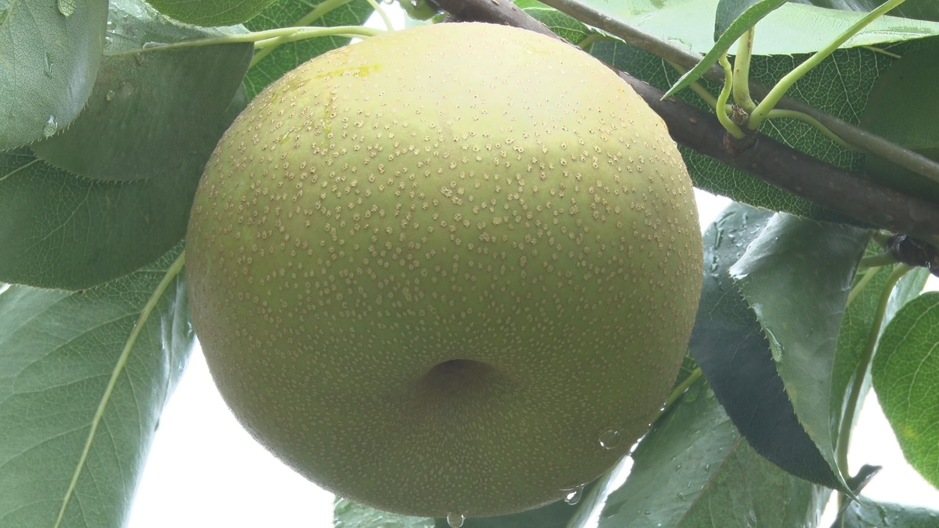 みずみずしく実ったナシ。下條村の宮嶋真司さんの畑では、旬を迎えた「幸水」の収穫が行われていました。