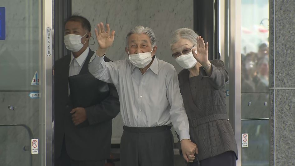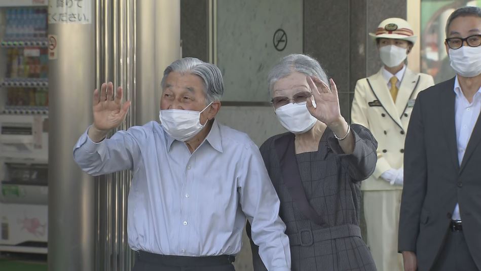 29日午後、帰京のため、軽井沢駅に到着された上皇ご夫妻。出迎えた人たちに手を振って応えられていました。