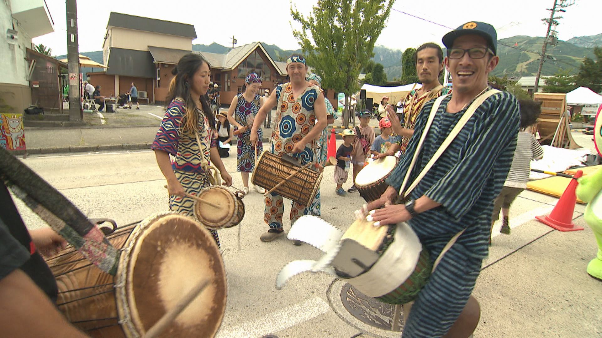 マウンテンバイクのパフォーマンスに、アフリカンドラムの演奏。9月2日に開かれた「白馬駅前ストリートフェス」です。