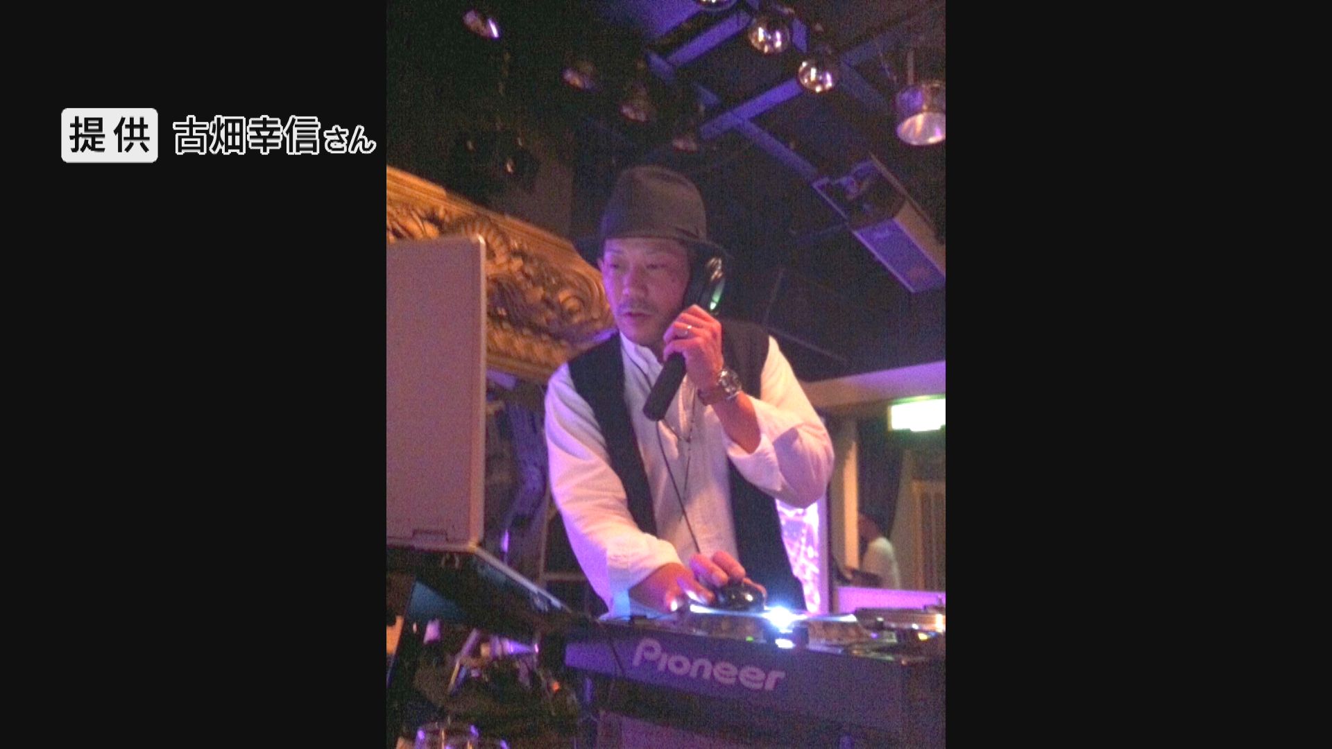 ノリノリのダンスミュージックで会場を盛り上げるDJ。古畑幸信さん48歳です。