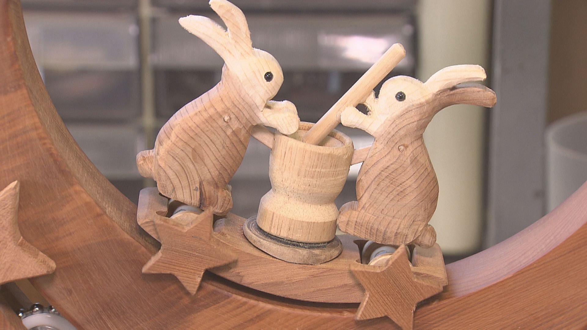 「出来上がるとこんな感じで、うさぎが餅をつきながら上がったり下がったり」