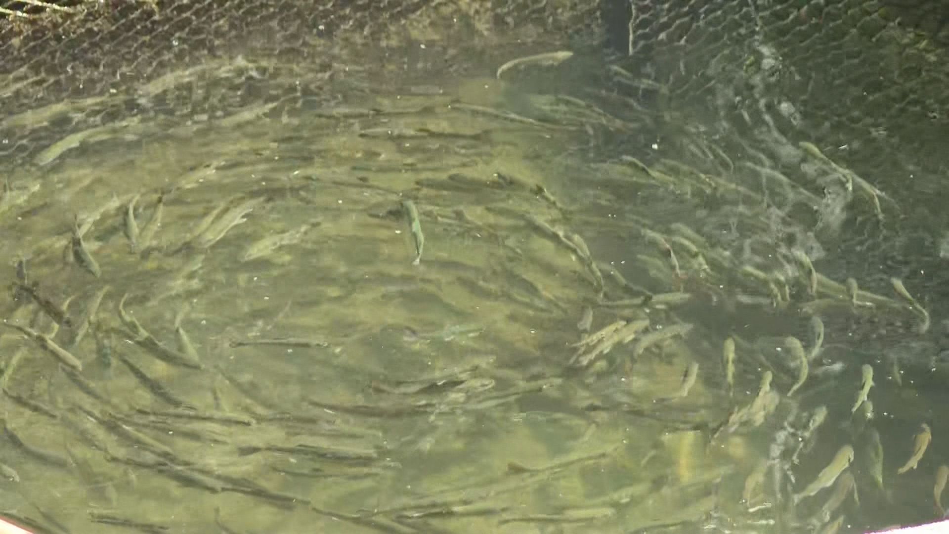 雨が降らず、川の水量が減った影響で池が酸素不足となり一部のアマゴが死んでしまう事態に。