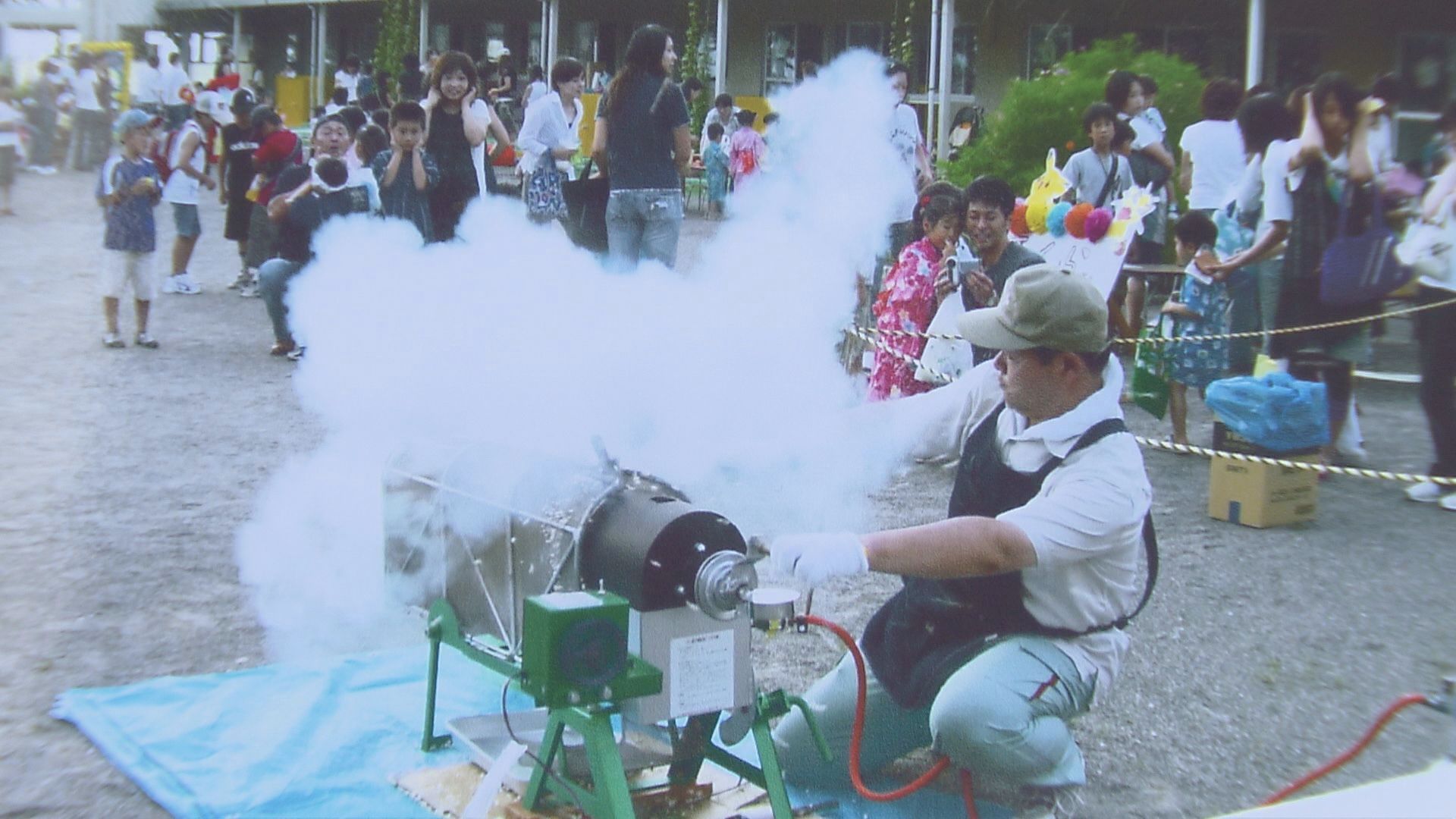 道の駅「信州新町」のイベントでポン菓子を作る中野さん