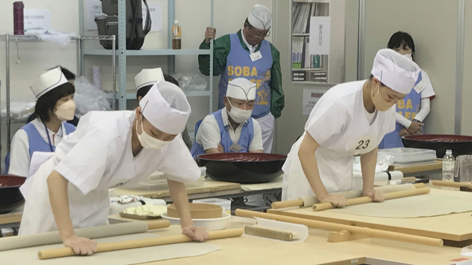 2人は「三段位」の腕前を披露。地元産のそば粉で「二八そば」を打ちました。