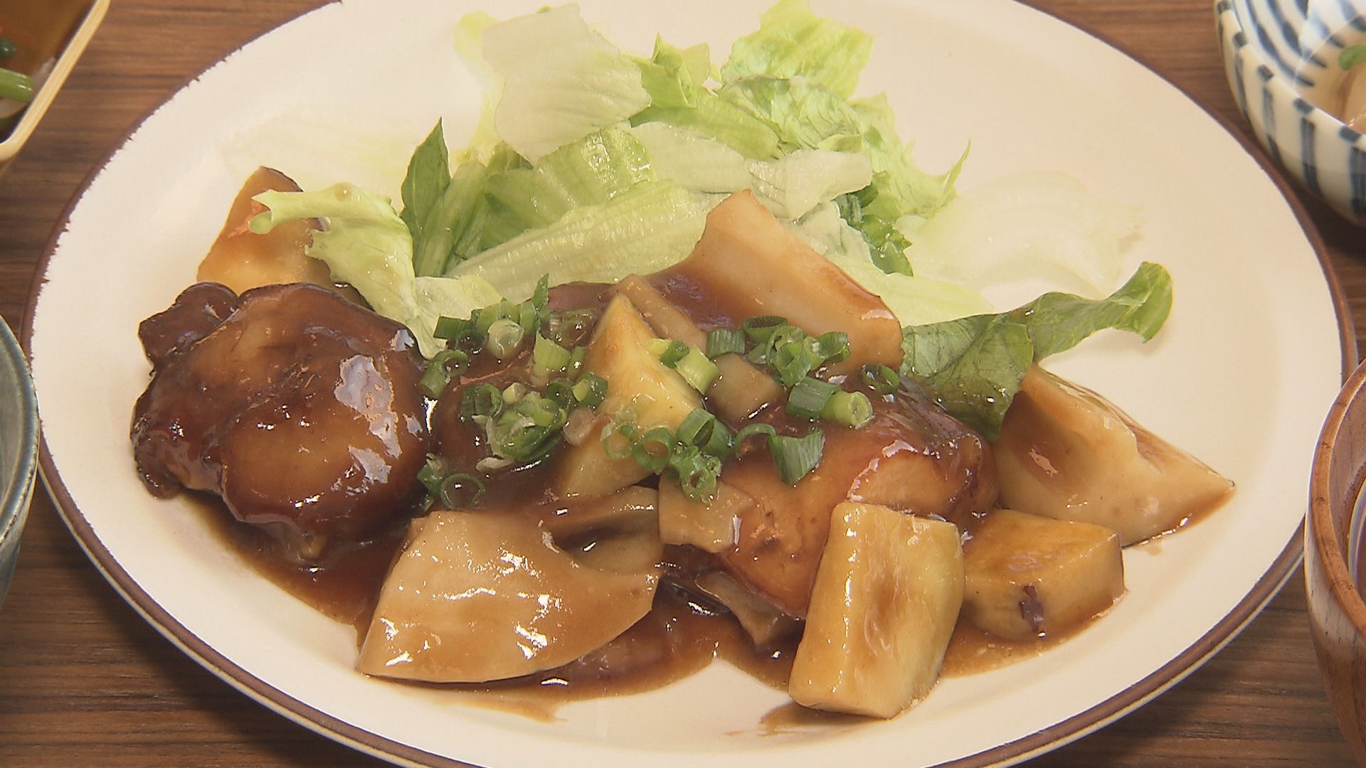 綿内レンコンもたくさん入った黒酢あんかけがメインの定食が出来上がりました。