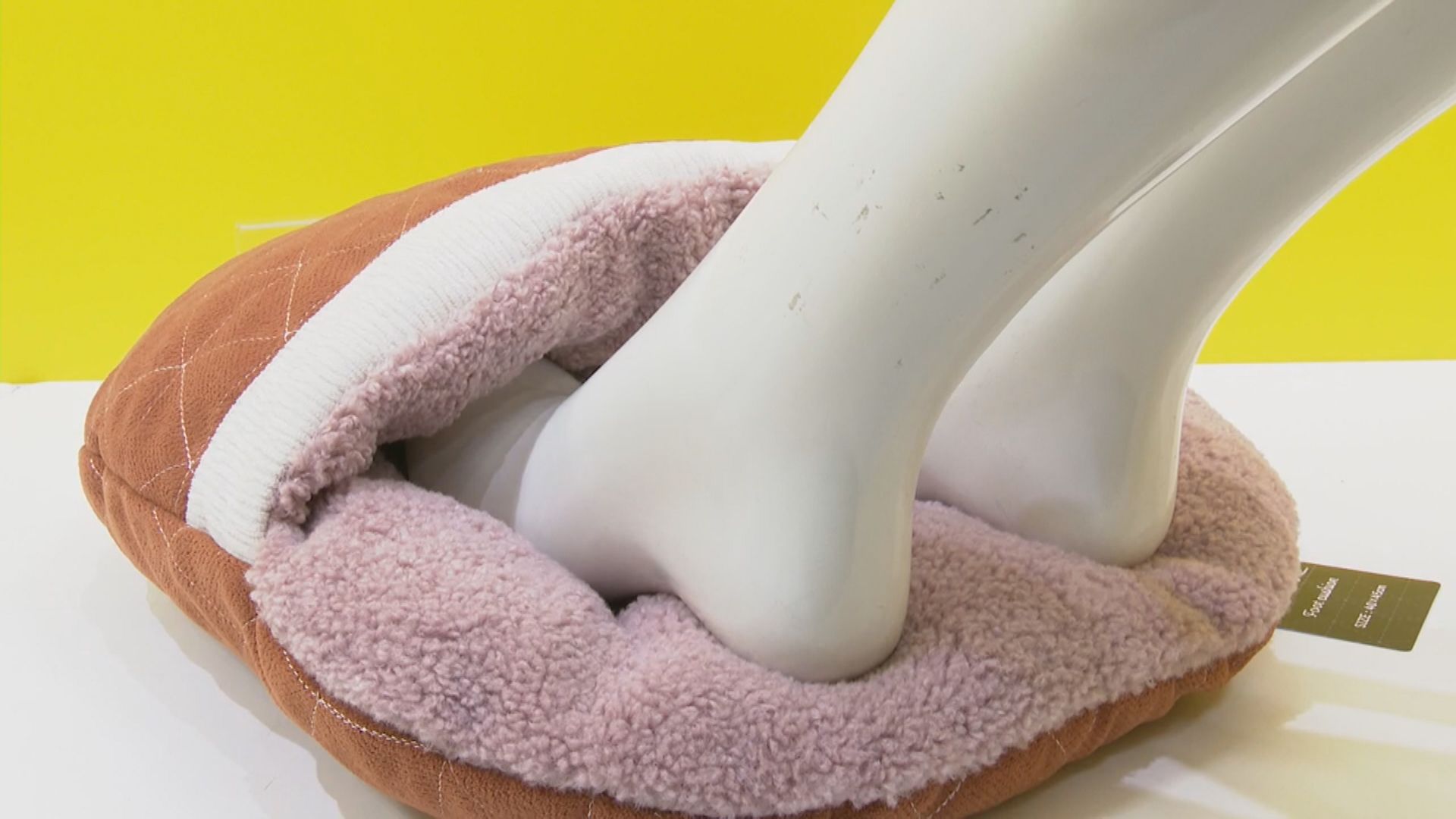 「こちらはフットクッションといって、両足で入れて温かくなるタイプのもの。こたつが使えないようなダイニングや勉強机の下に入れてもらえて、足を入れて温まってもらうもの」