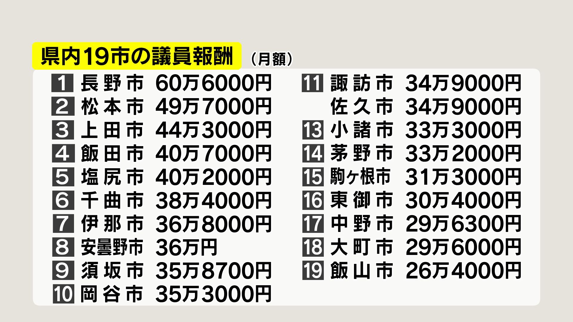 最も低かったのは人口が少ない飯山市議会の26万4000円でした。