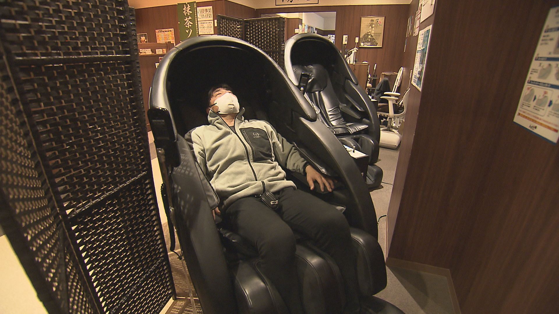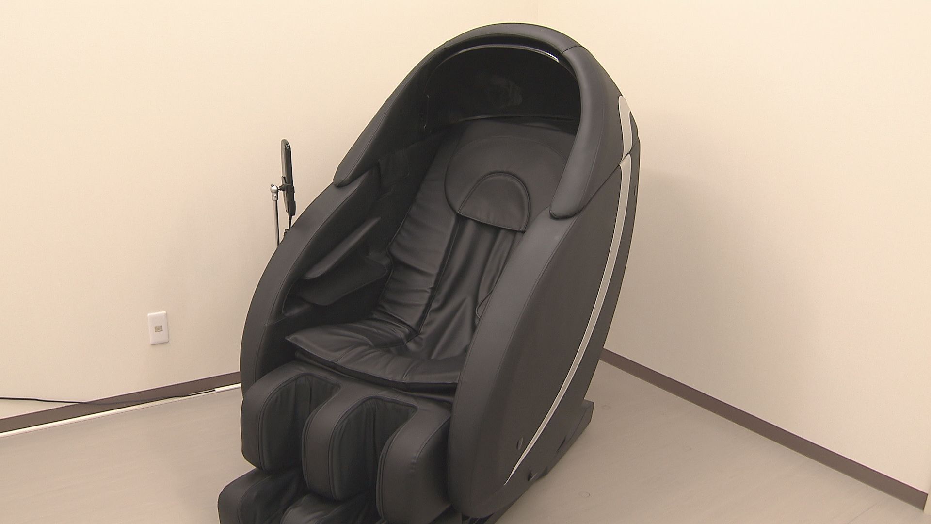長野市の温泉施設。湯上りの客がマッサージチェアでリラックスしていました。