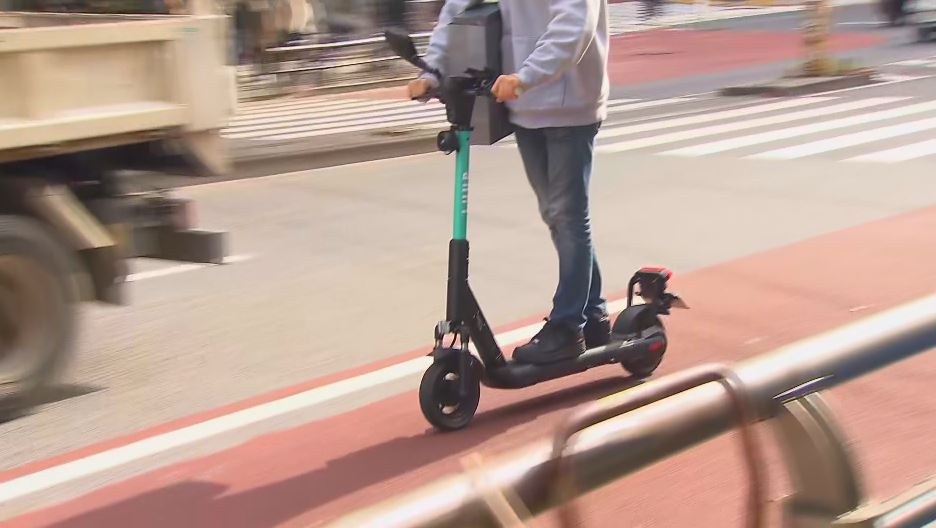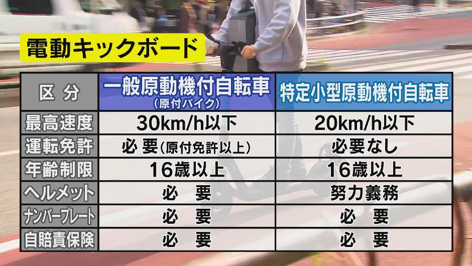 電動キックボードは7月に改正された道路交通法で最高速度20キロ以下などの基準を満たせば免許がなくても運転できます。
