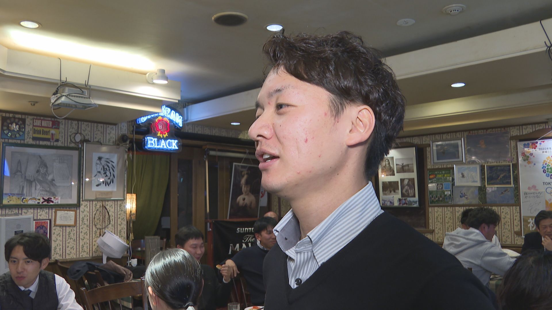 「入社2年目になります。(忘年会)初めてです。楽しいですね、なかなかなかったのでこういう機会が」