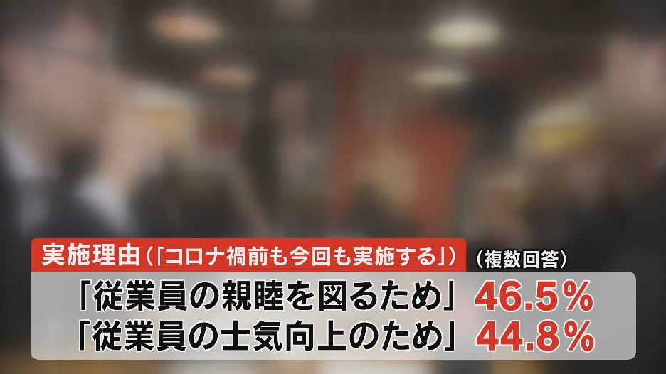 「コロナ禍前も今回も実施する」とした企業の開催理由は、「従業員の親睦を図るため」が最も多く、次いで「従業員の士気向上のため」でした。