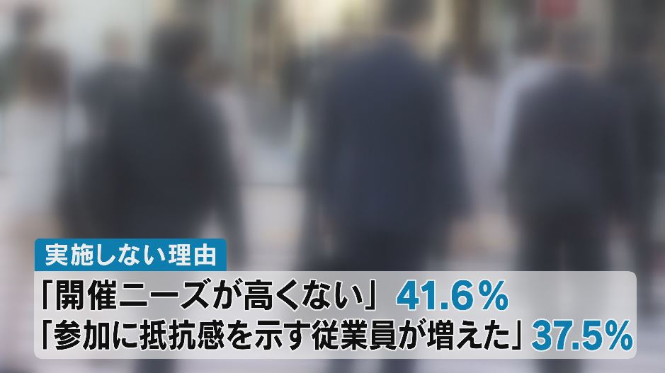 実施を見送った理由で最も多かったのは「開催ニーズが高くない」次いで「参加に抵抗感を示す従業員が増えた」という結果でした。