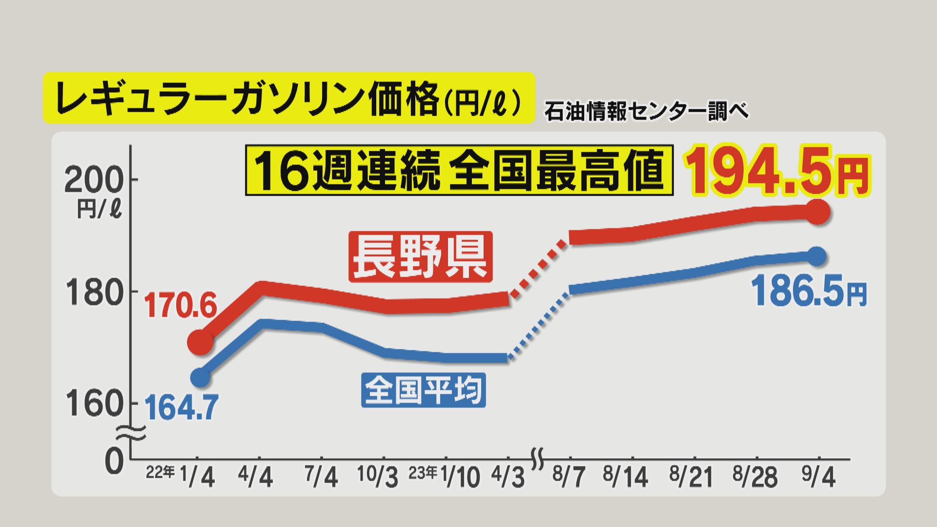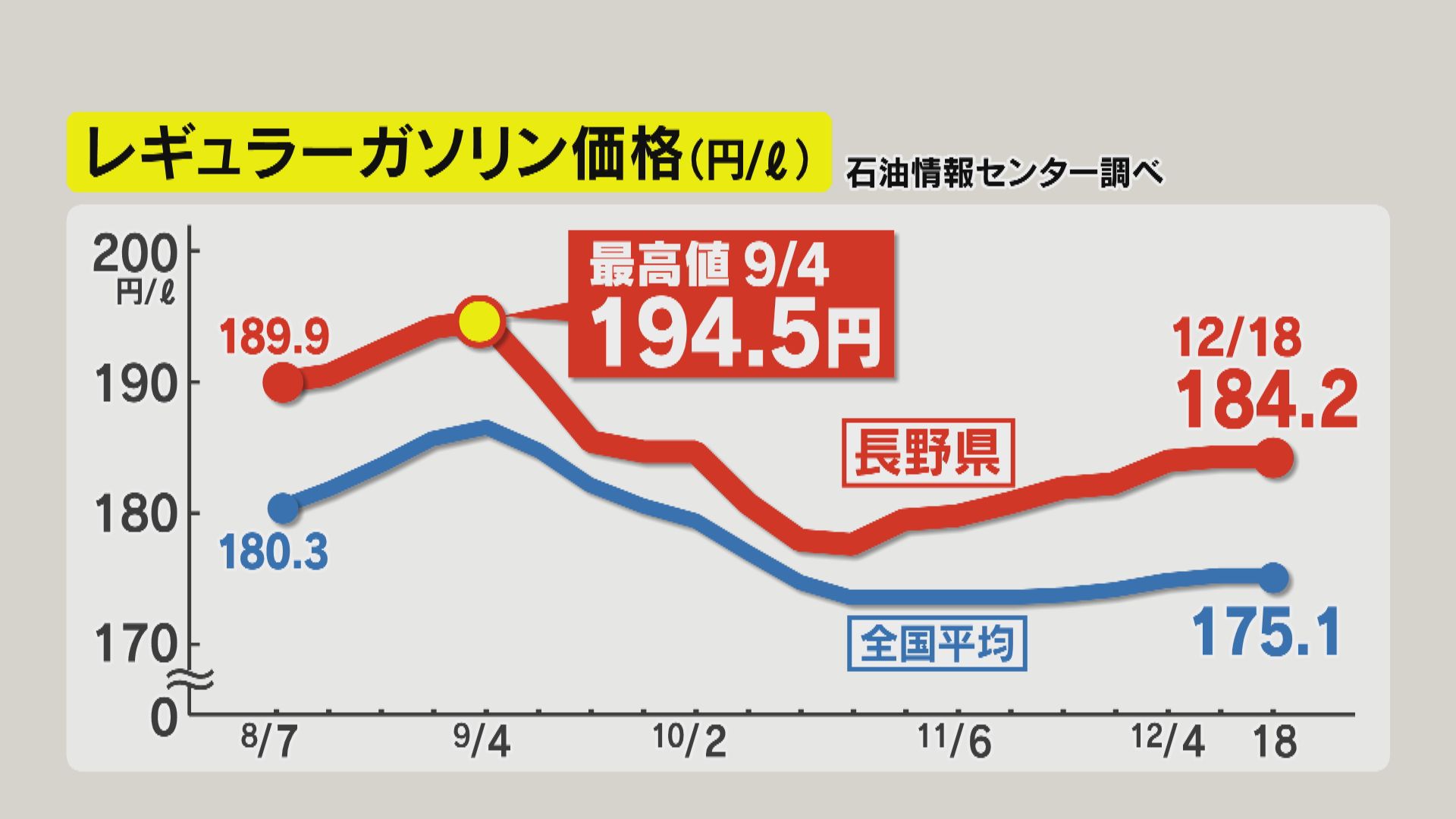 ウクライナ情勢や円安でガソリン価格が高騰。9月には16週連続で全国最高値を記録し、過去最も高い1リットルあたり194.5円まで上がっていました。