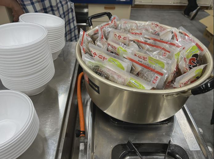 避難所でおでんを振る舞う(提供 スギヨ