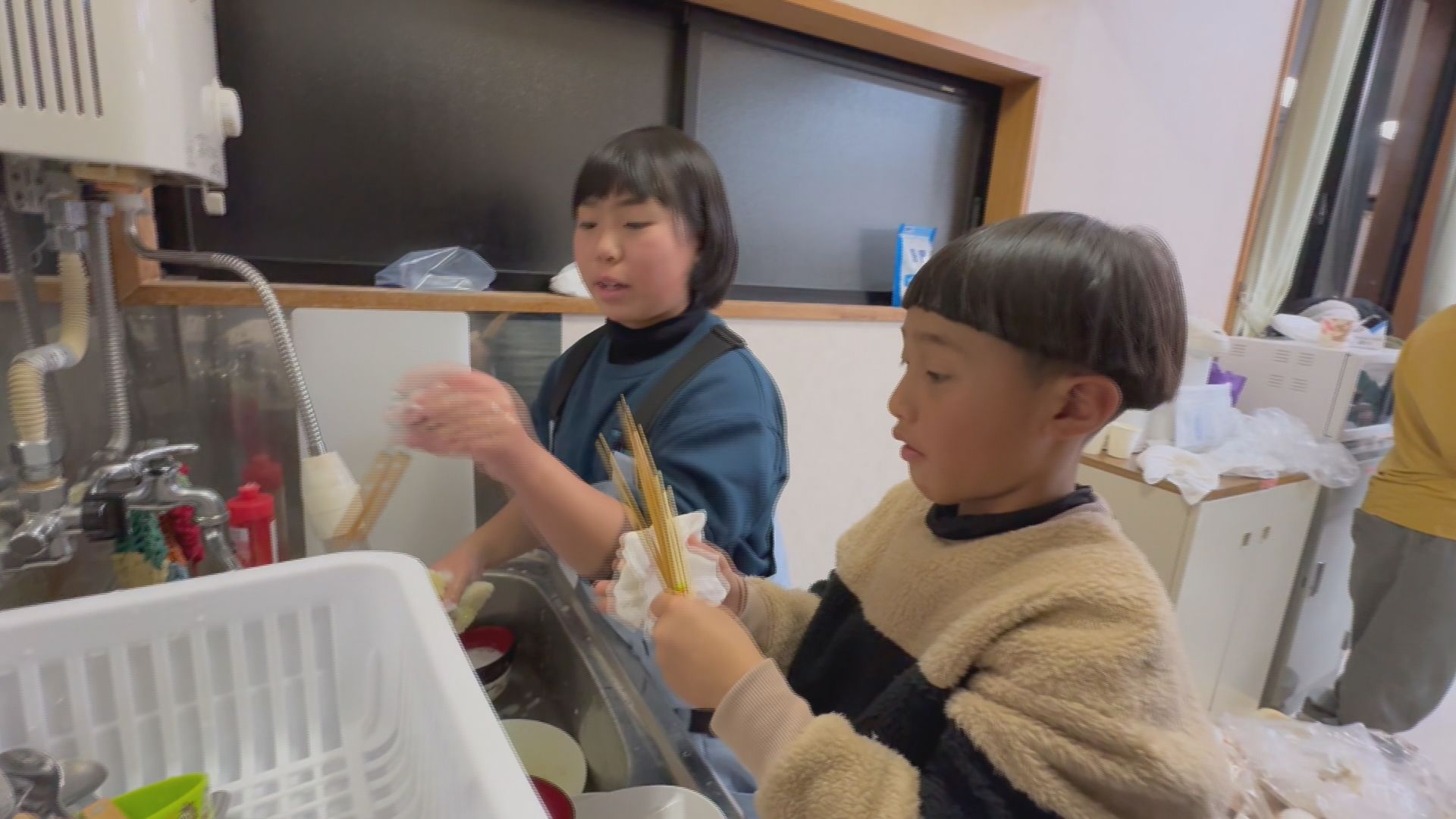 食器洗いを手伝う長女・瑚陽さんと長男・悠元さん