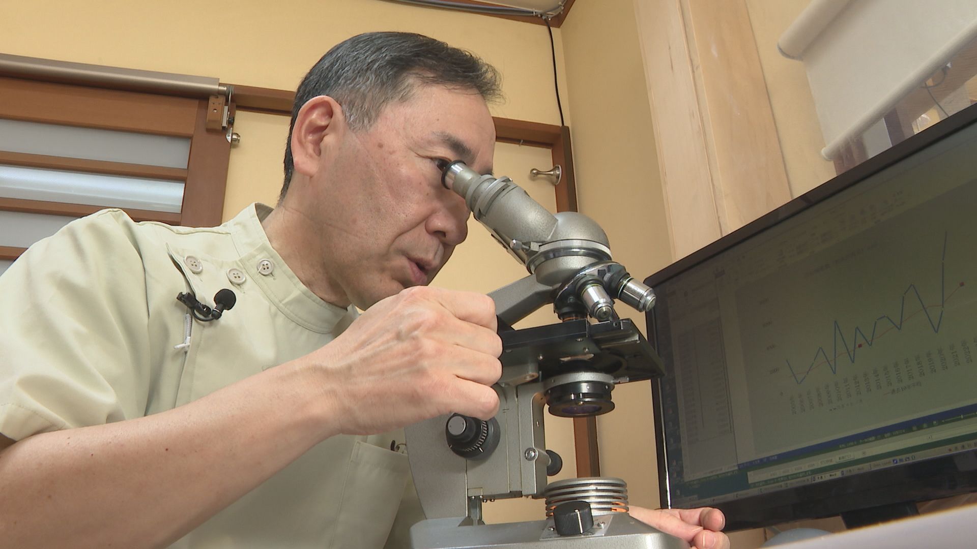 独自に飛散量などを調べているクリニックの蓑島院長。