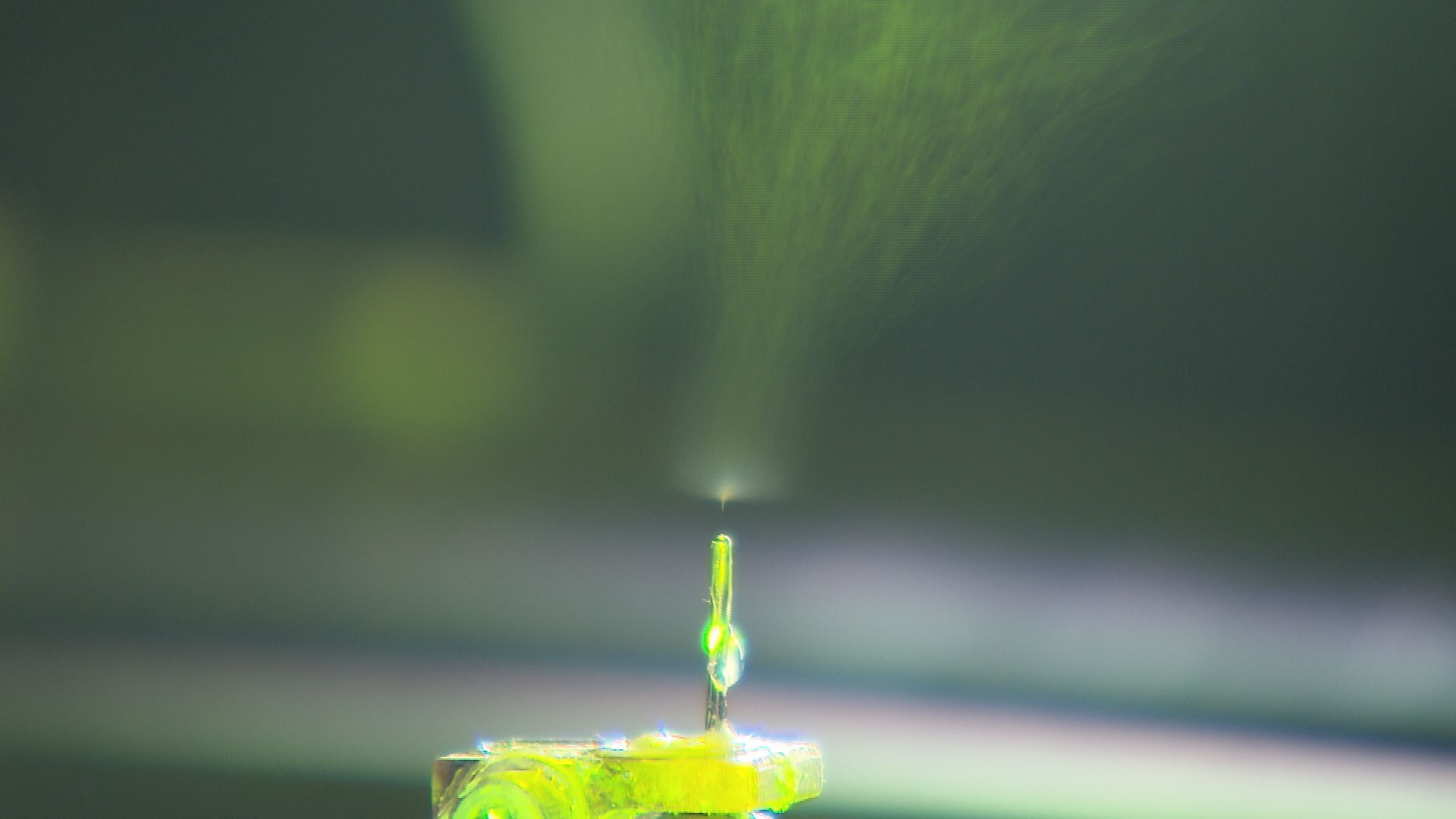 下から吹きあがって見えるのが、ナノファイバーの"糸”。