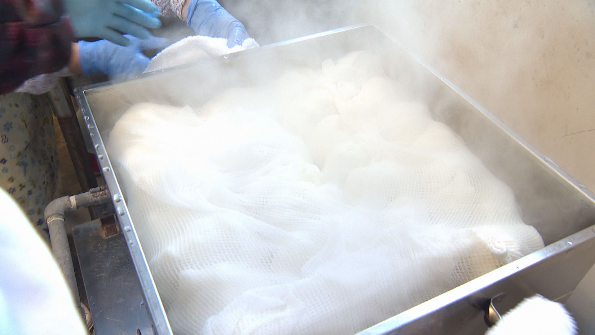 米粉で作る生地をふかす
