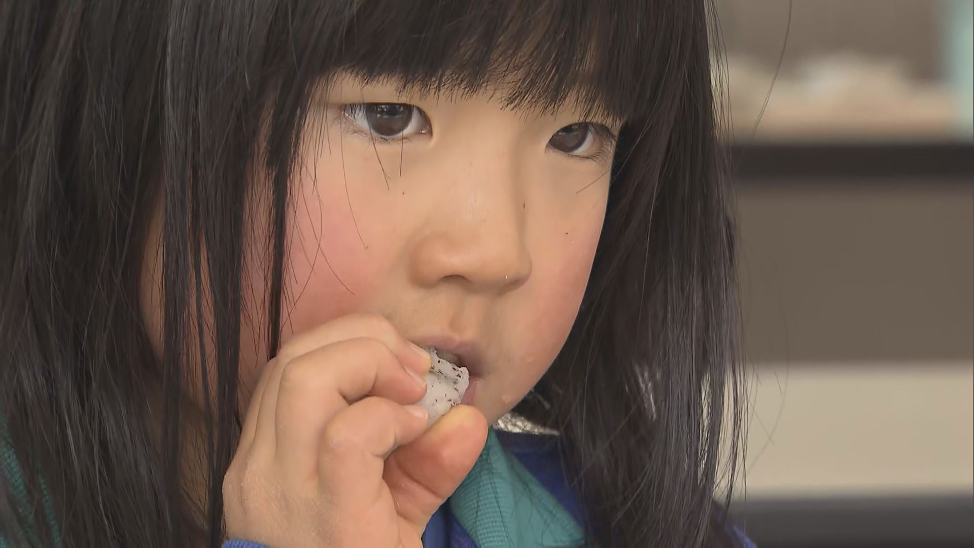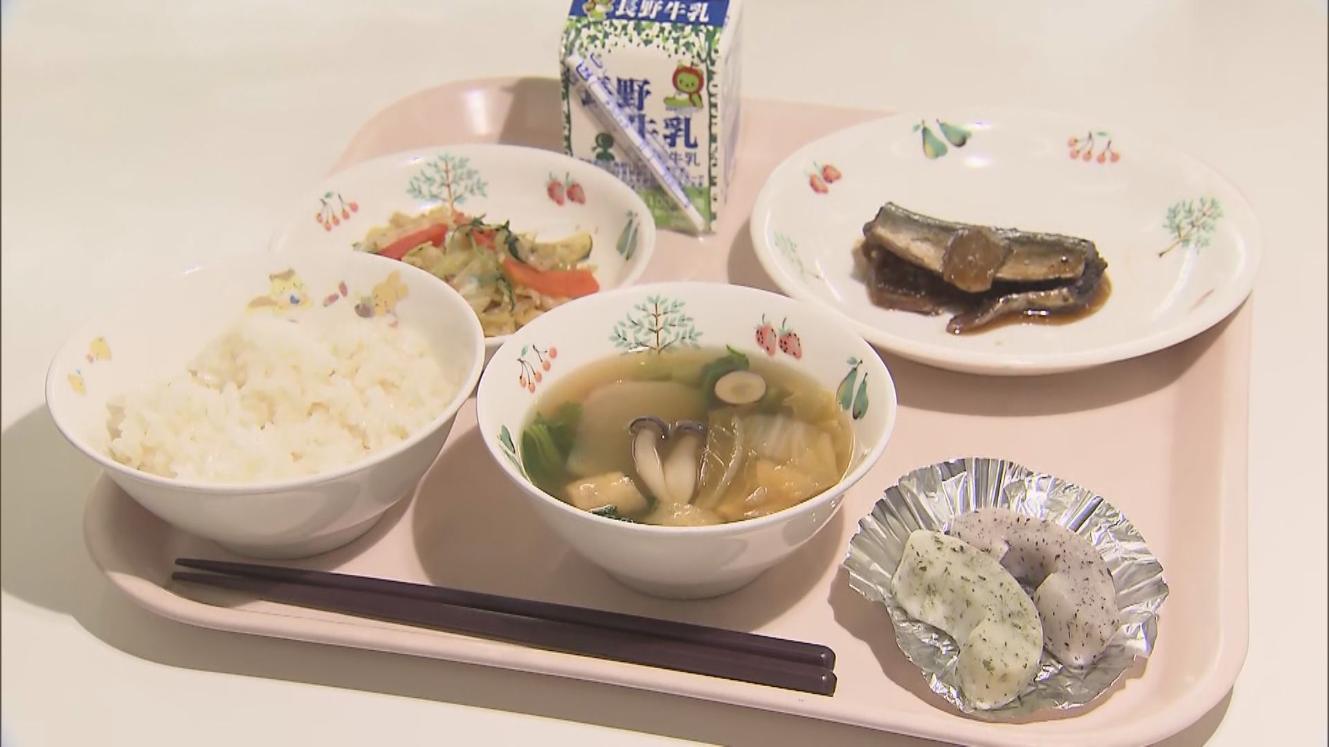 栄小学校の給食。児童がほおばっているのはー。