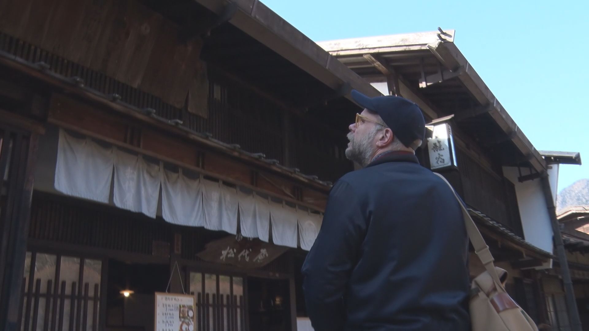 「中山道を歩きたかったのと本で読んで以前からこのエリアを見てみたいと思っていたので来たんだ。美しい、完璧だ。中山道がここで、川が流れていて雪が降っていて、とても美しい場所だった」