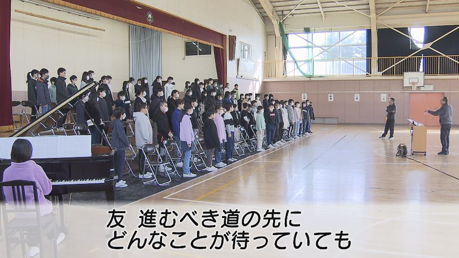 曲は人気デュオ「ゆず」の「友~旅立ちの時~」。8つの候補曲の中から児童が選んだそうです。