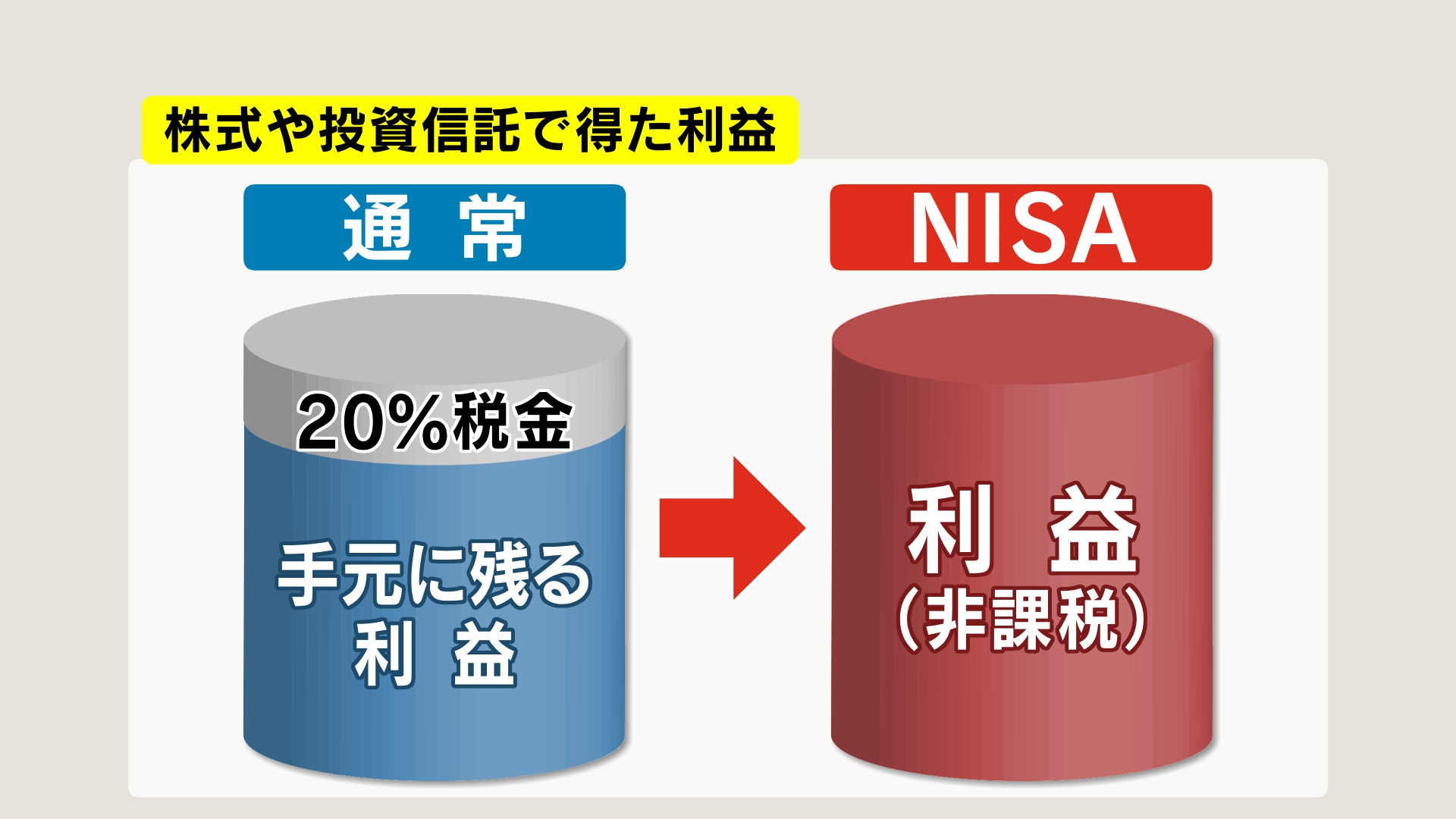 通常、株式や投資信託で得た利益は20%の税金がかかりますが、毎年一定の範囲内の投資で得られた利益を非課税にするものです。