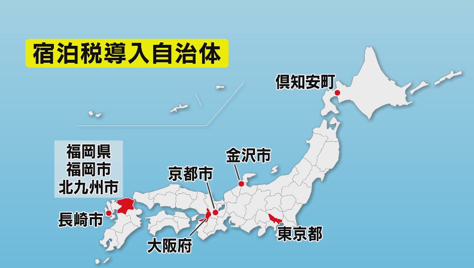 「宿泊税」は現在、東京都や大阪府、京都市、金沢市など9つの自治体が導入しています。