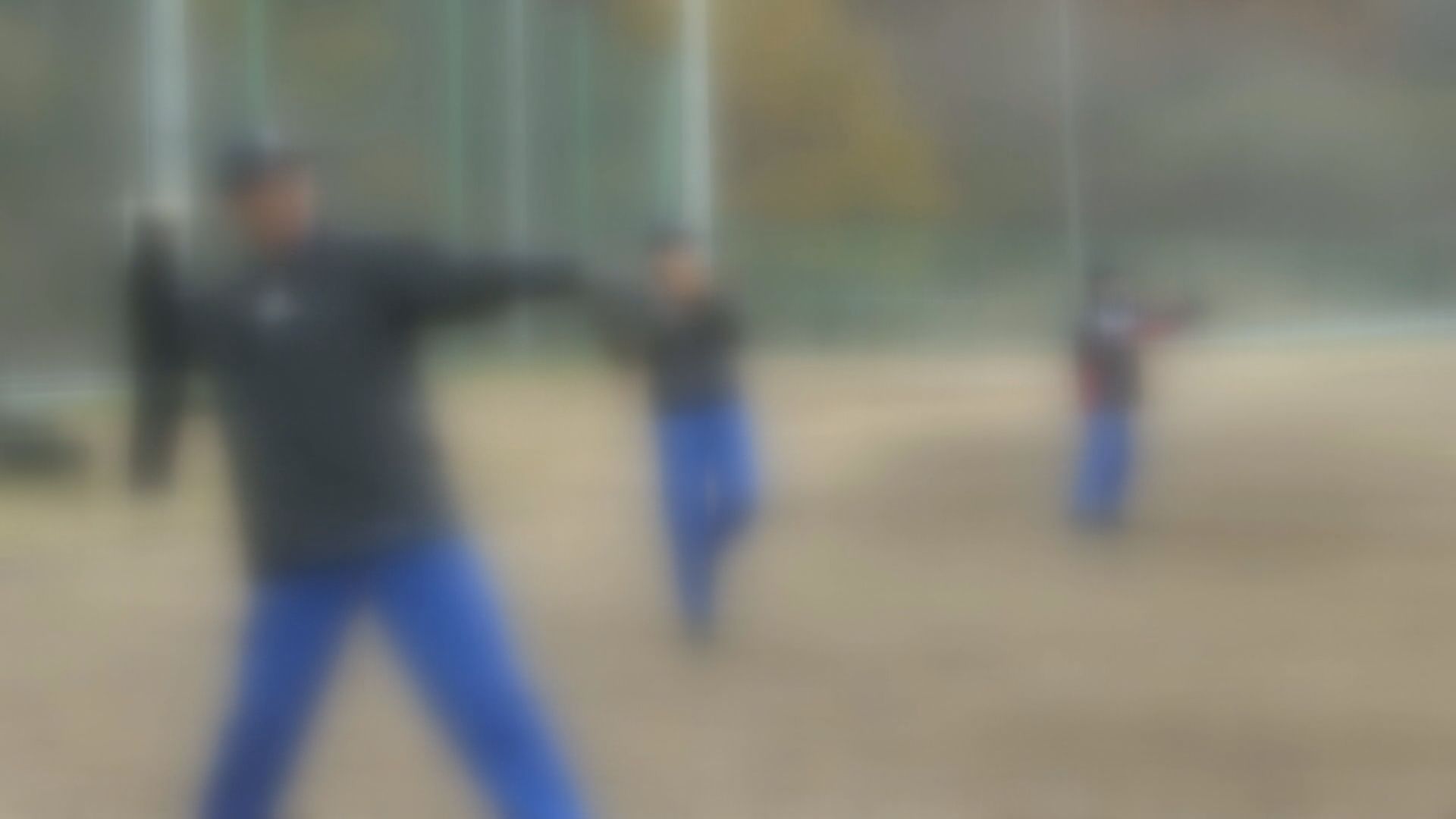 ソフトテニスの指導をする月岡教諭