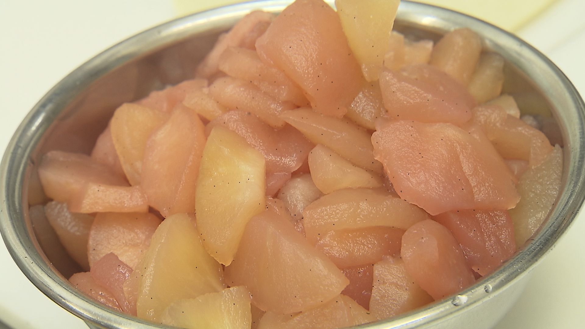 「これはうまいや。こうやってリンゴを入れて販売すればこっちも助かるわ。菓修さんも上手だ。こんなにおいしく作って」