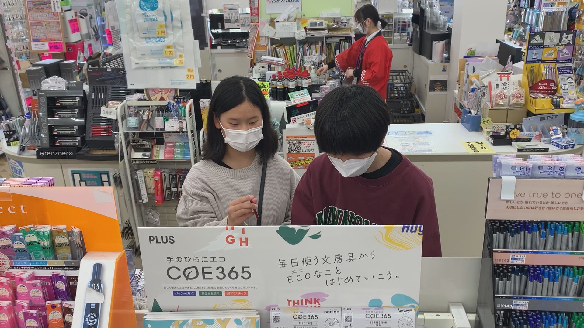 「ノート類とか、ファイルとか(購入)。4月から大学に行くので、新生活に必要なものを買いに来ました」