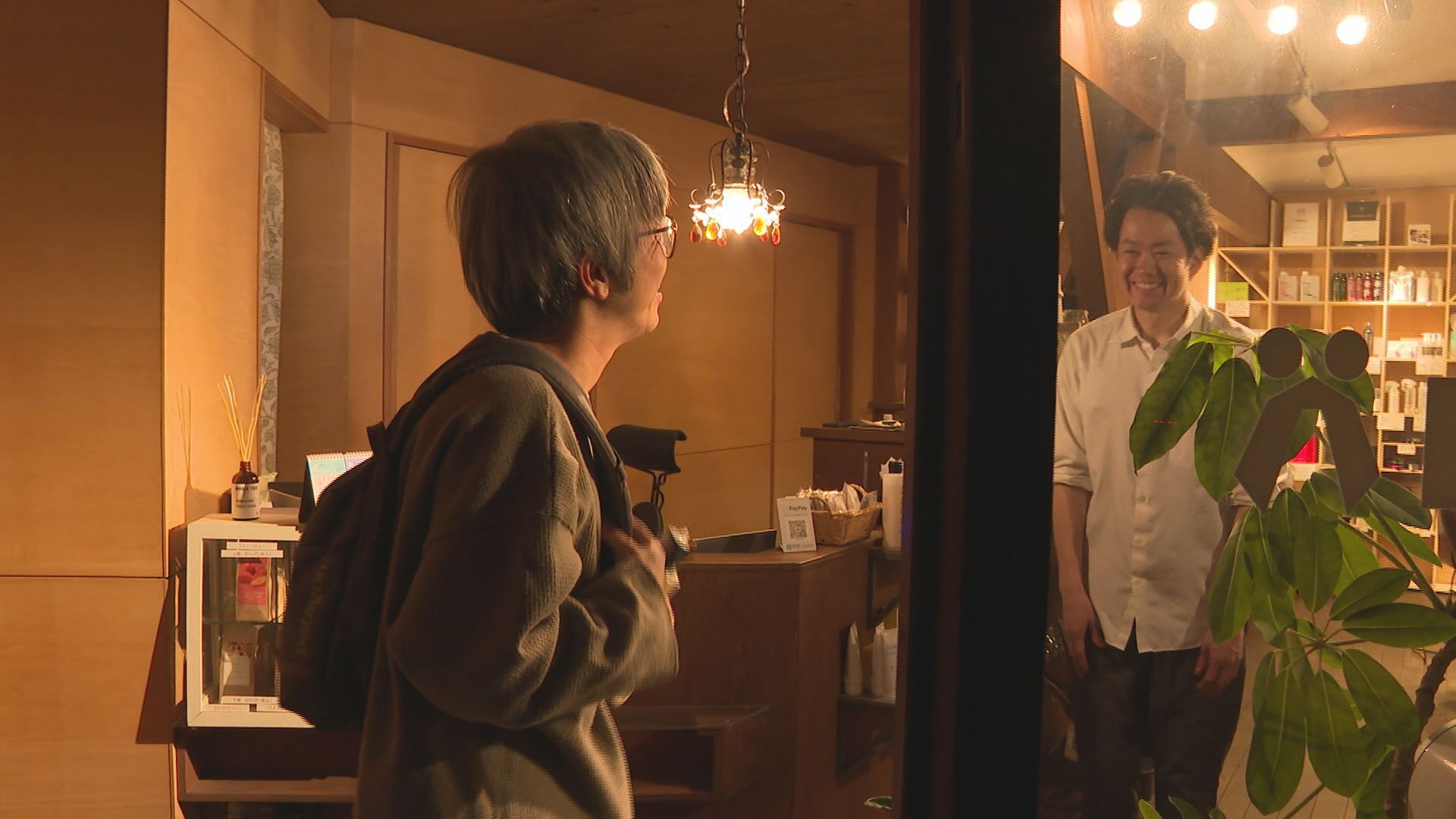最後の来店となった客を見送る